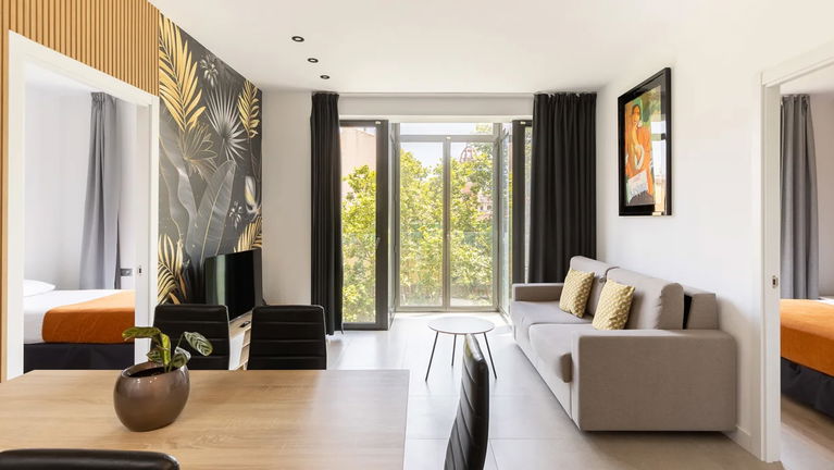 Cosmo Apartments Consell de Cent offers stylish apartments in the heart of Barcelona, 700 m from Universitat Square and 300 m from Urgell Metro. Located in the quiet Eixample district, the property has 3 two-bedroom duplexes, 10 superior two-bedroom apartments, and 15 two-bedroom apartments. Spacious units with fully equipped kitchens designed for comfort and an unforgettable stay.