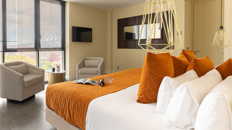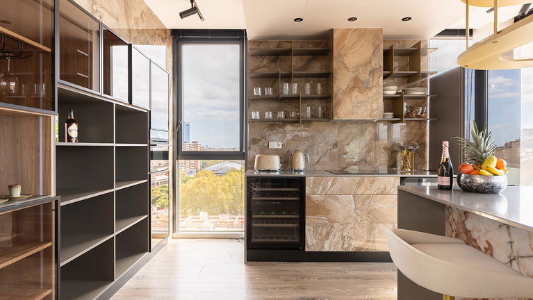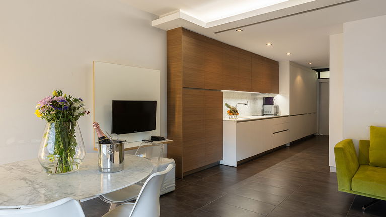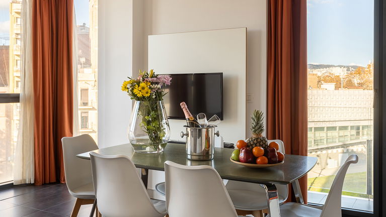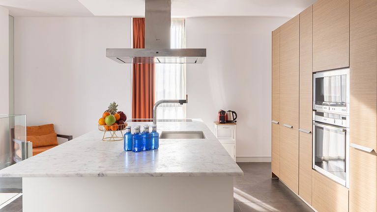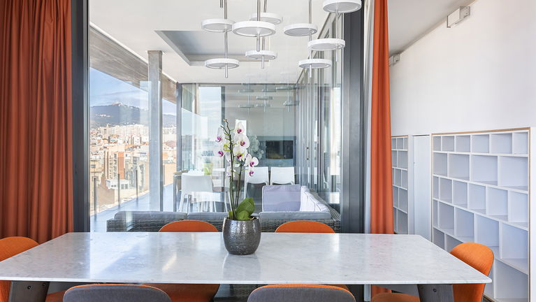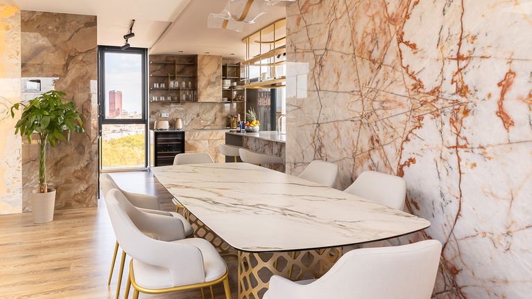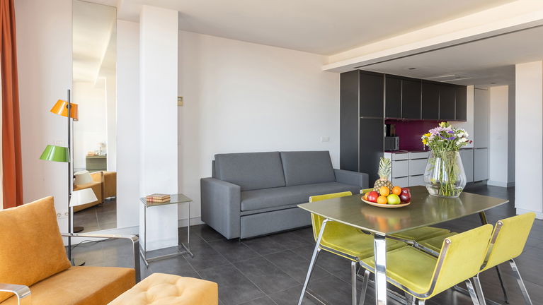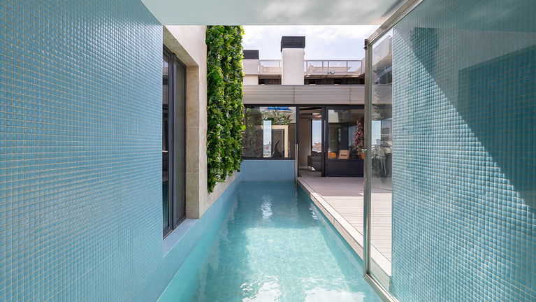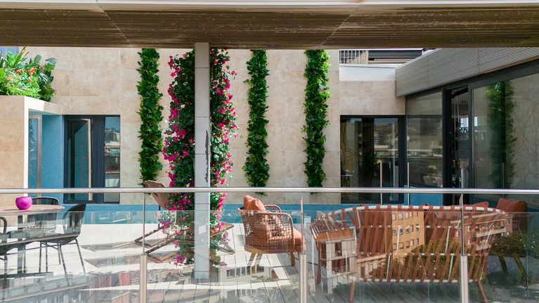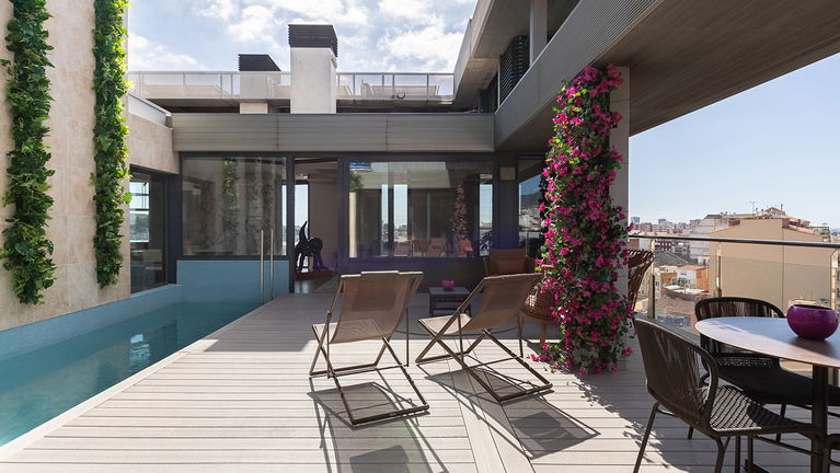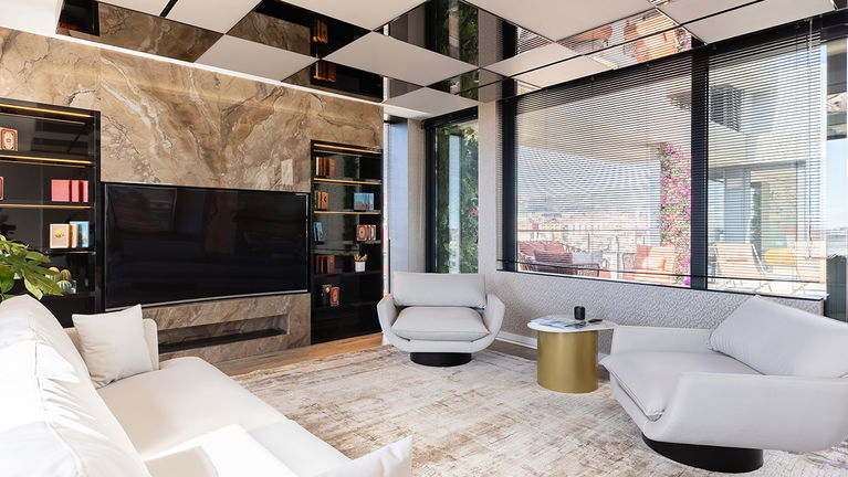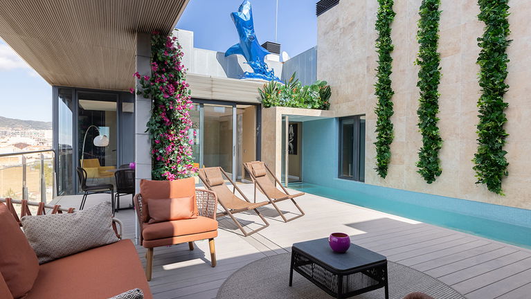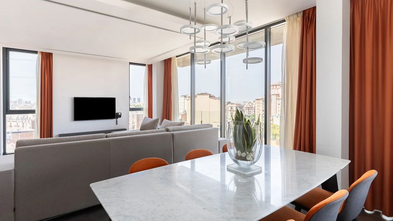 Exclusive 200 m² penthouse suite with private pool, located on the top floor. Renovated in 2024 with premium materials like onyx and marble. Includes 3 bedrooms, a spacious living and dining area, and a fully equipped kitchen. Offers panoramic views and high-end comfort for up to 6 guests. Ideal for families or business stays.