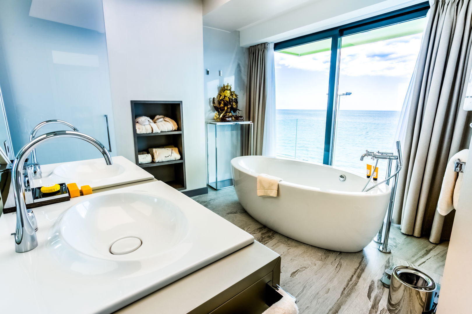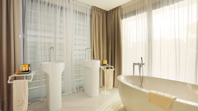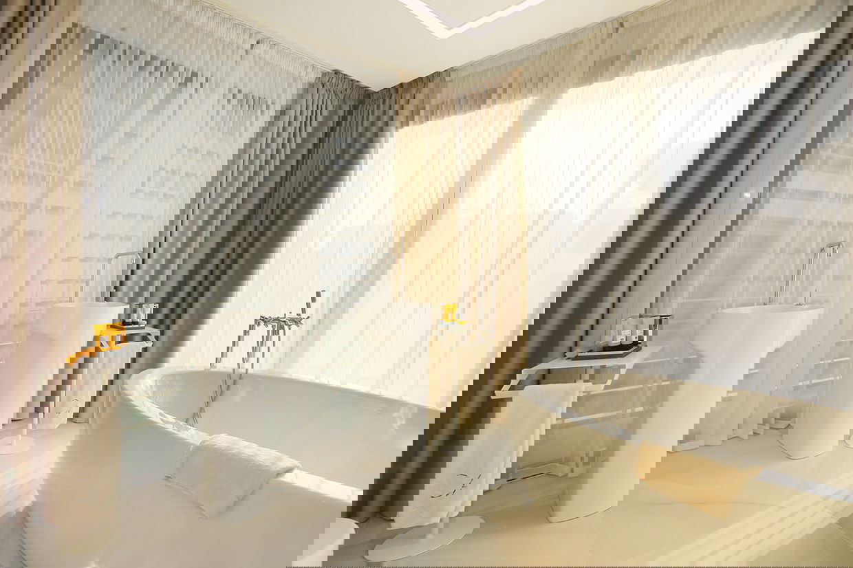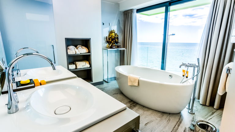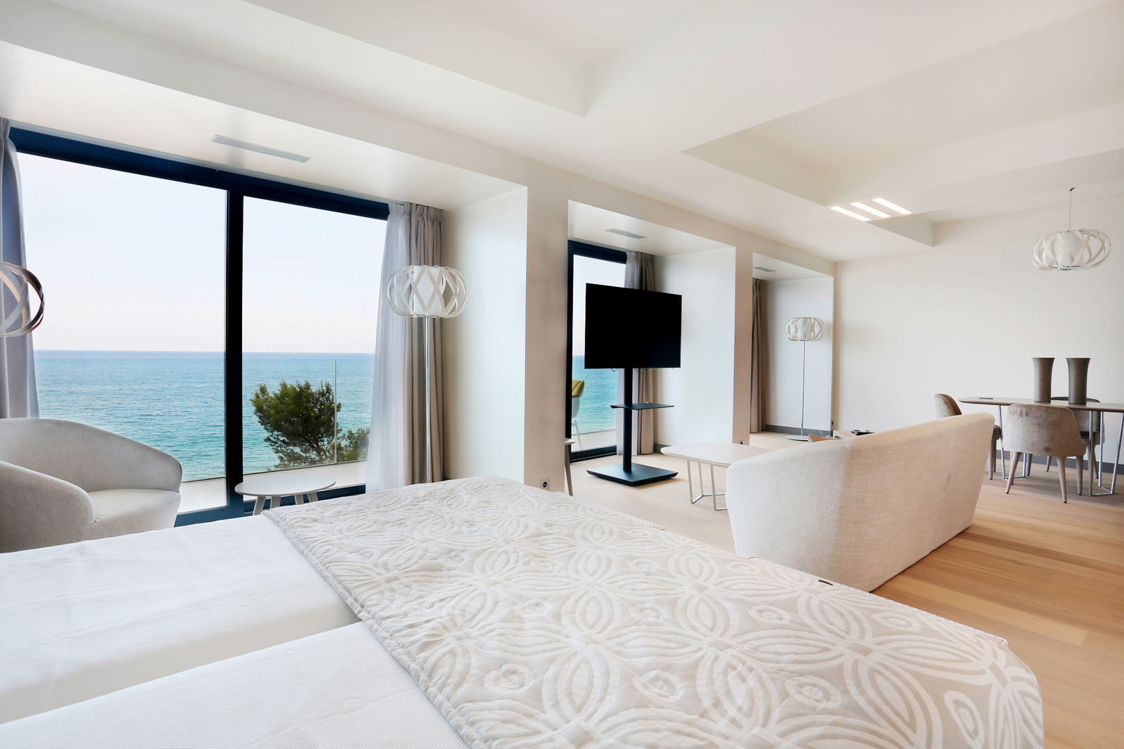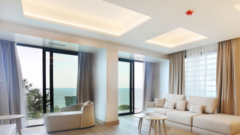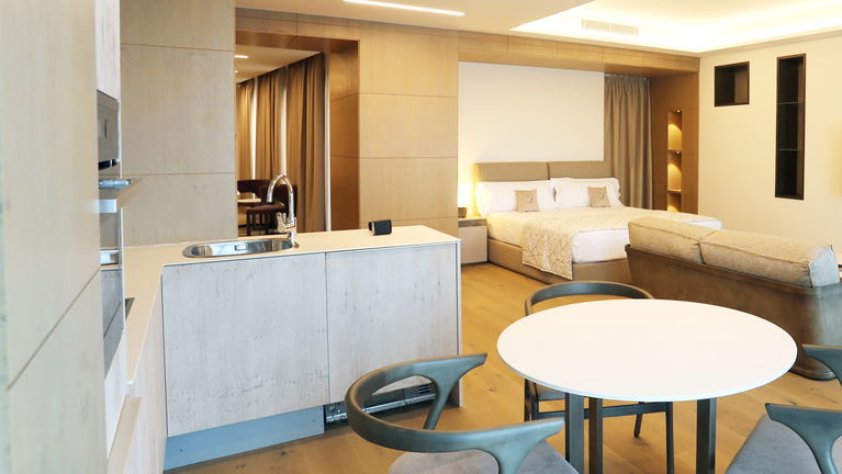Our exclusive 90 m² apartments combine comfort, elegance, and stunning sea views. Each features a spacious living room with a double bed, a separate bedroom with two twin beds, a fully equipped kitchen, and a bathroom with a freestanding bathtub. Private terraces offer breathtaking views. Ideal for up to 4 guests - perfect for families, couples, or small groups.