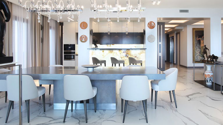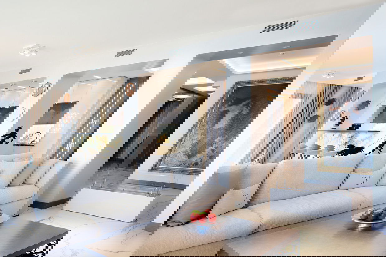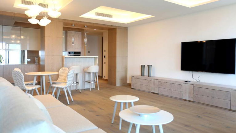 This luxurious 255 m² penthouse offers stunning sea views, two terraces, and a private rooftop with a jacuzzi. Located on the fifth floor with direct elevator access, it features a spacious living room with kitchen, and three elegant bedrooms with en-suite bathrooms and dressing rooms. Accommodates up to 6 guests.