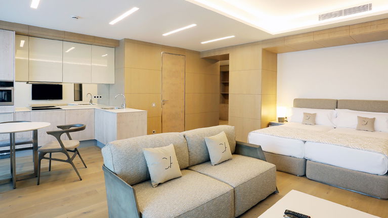 Cosmo Apartments Playa de Aro is located on the seafront in the heart of Playa de Aro, Costa Brava. This premium apart-hotel features 15 elegantly designed apartments across five categories. Each unit boasts modern design, high-quality finishes, and stunning Mediterranean Sea views for an exceptional stay.