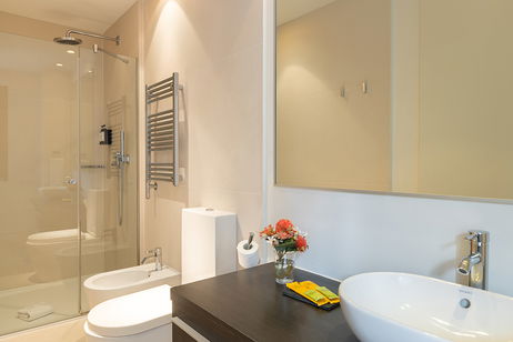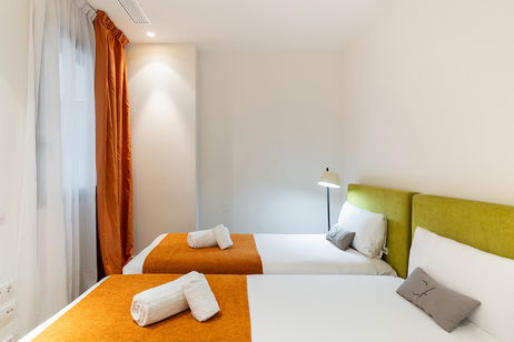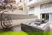 Luxurious 98 m² duplex apartment with two bedrooms, a fully equipped open-plan kitchen, bright living-dining area, and a private terrace with garden furniture. The ground floor includes a modern kitchen, dining space, and a double sofa bed. Upstairs, a master suite with private bathroom and double bed, and a second bedroom with two single beds. Accommodates up to 6 guests. Air-conditioned and stylishly decorated for a comfortable and elegant stay.