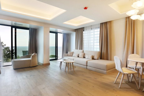Spacious and elegant 75 m² one-bedroom apartments designed for comfort and style. Each unit includes a fully equipped kitchen, a bright living area, a separate bedroom with a double bed, a modern bathroom with a shower, and a private terrace with stunning sea views. Ideal for 2 guests.