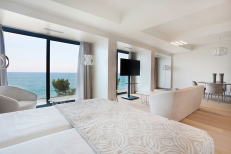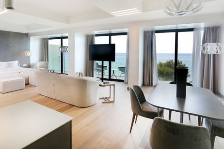 Experience the perfect blend of luxury and comfort in our elegantly designed studios. Each studio (45–67 m²) features a private terrace with stunning sea views, a fully equipped kitchen, a double bed, and a modern bathroom with a shower or freestanding bathtub. Ideal for 2 guests seeking a peaceful and stylish seaside retreat.